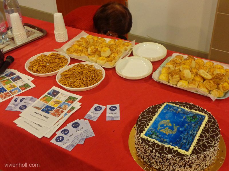 Miután körbeértünk jött egy meglepetés is… Egy születésnapi torta és köszöntés. Ugyanis most lesz a születésnapom – február 6-án leszek 26 éves. 🙂 Egyáltalán nem számítottam a köszöntésre! A pápai Ricsi Cukrászdától lett rendelve egy torta az aranyhalas képemmel. Nagyon finom volt. 🙂 Köszönöm Ricsi Cukrászda a tortát! És szeretném most megköszönni a Jókai Mór Városi Könyvtár igazgatójának és dolgozóinak a lehetőséget a kiállításra, s a segítséget a szervezésben, megrendezésben! És legfőképpen köszönöm édesanyámnak, Hollenczerné Balog Ilonának a támogatását és segítségét! 🙂