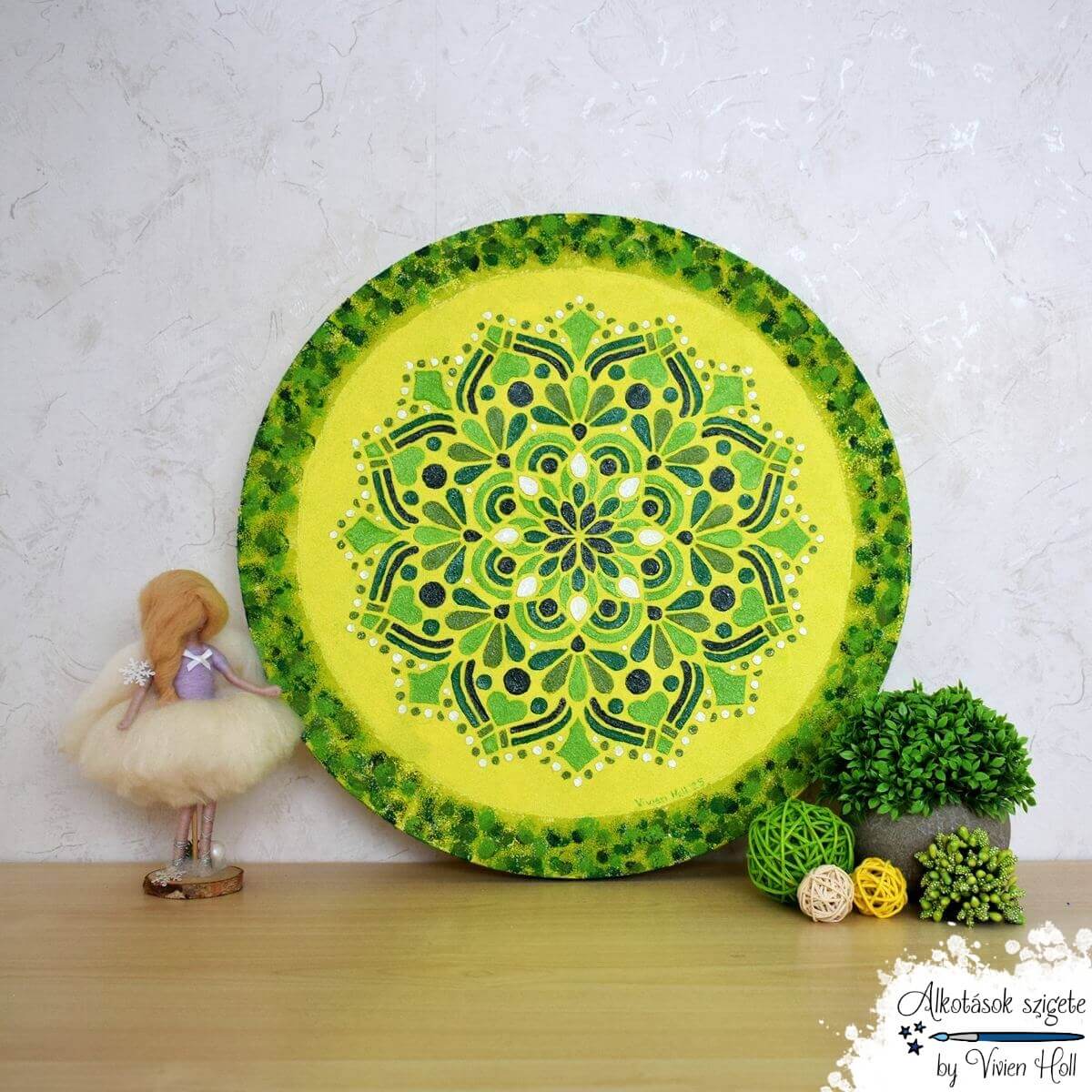 A mandalákon ez a szín az egészség, az újjászületés és a spirituális gyógyulás energiáját szimbolizálja. Segíthet kapcsolódni a környezethez, de a belső békéhez is. Gyakran a stabilitással is szimbolizálják a sötétebb árnyalatait.